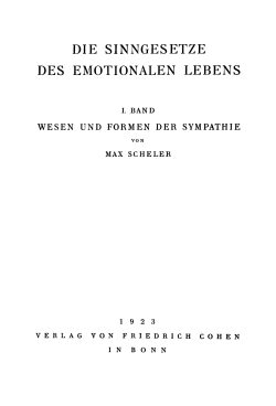 Ein überarbeitete und erweiterte Fassung von Schelers Buch Wesen und Formen der Sympathie (1913: Zur Phänomenologie und Theorie der Sympathiegefühle und von Liebe und Hass) erscheint. Scheler greift darin auf eine Vielzahl französischer Quellen zurück.